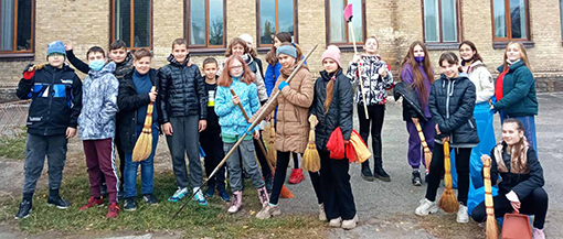 23 жовтня колектив гімназії на чолі з адміністрацією дружно й активно наводив лад на шкільному подвір'ї. Прибрали листя з газонів, підмели доріжки, встигли нажартуватись і поспілкуватись.
