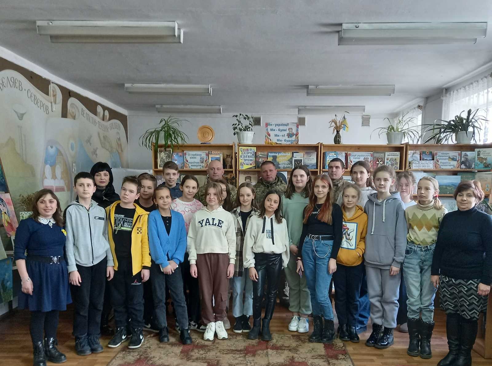 Гімназисти 2-Б класу на бібліотечному уроці «Слава нескореним» дарують свої сердечка нашим захисникам на знак шани і вдячності. А учні 6-А класу відвідали патріотичний захід у міській дитячій бібліотеці, де зустрілися з військовими ЗСУ.