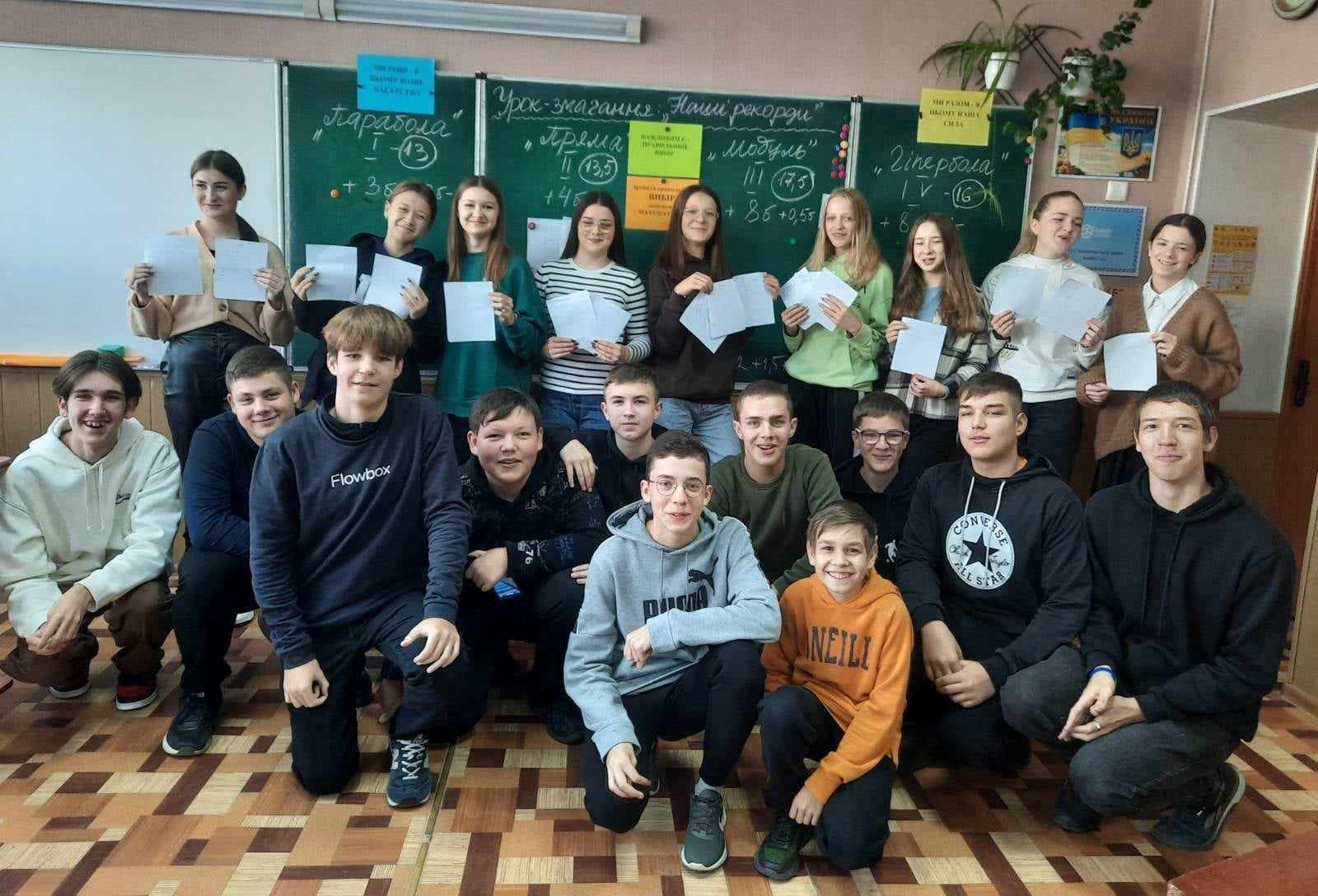 Наполегливо і продуктивно працювали усі учні 11-М класу на уроці «З логарифмами на «ти», та все ж командний рекорд вдалося встановити групі, якою керував наш чемпіон Європи з карате Чернявський Олександр, який вдало делегував обов’язки кожному члену групи, а саме: Осаулі В’ячеславу, Третяку Олександру і Павловському Роману. Персональний рекорд в тестуванні належить Григоренку Іллі. В ході інтелектуальної гри «Осінній ірраціональний лабіринт» в 10-М класі найкращі знання властивостей кореня n-го степеня показала група Дар’ї Тугай, яка координувала роботу Антона Моцного, Олександра Нераденка, Анастасії Купець, Дар’ї Склярової і Станіслава Ковальського. Діти, вірю в вас, вірю в ваш успіх, вірю в ваші можливості встановлювати рекорди!
