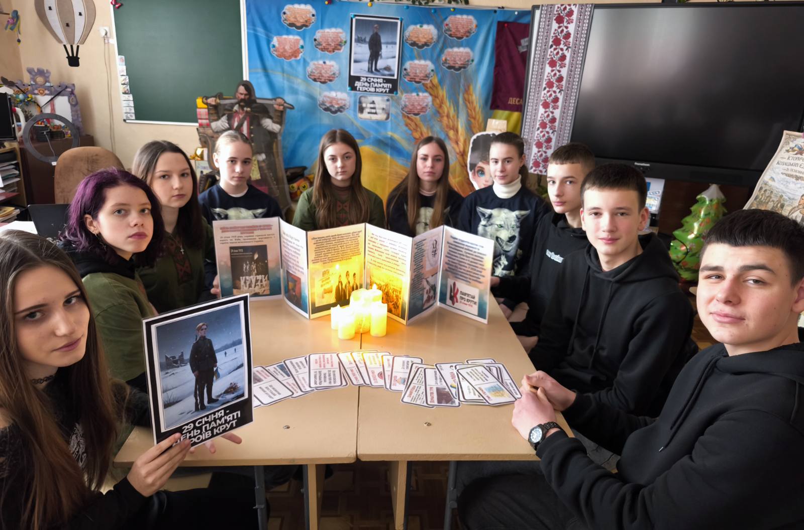 29 січня – особлива дата в історії України - День пам’яті Героїв Крут. У закладах освіти міста Сміла проведено низку патріотично-виховних заходів, приурочених до цього дня. Історичні відеогодини «Герої Крут – для нащадків взірець», «Перші кіборги» відбулися для учнів молодших класів, уроки пам’яті «Крути… Шлях у безсмертя», виховні години «Крути: подвиг і трагедія» провели старшокласники. Години вшанування «Крути: і юність, і совість, і воля», «Герої Крут – символ мужності, самопожертви та любові до України», тематичні зустрічі куренів юних джур «Подвиг юних захисників Української держави» - разом із вчителями підготували учні старших класів. Також у музеях закладів освіти організовано тематичні виставки фотографій, документів, облаштовано виставки художньо-публіцистичної, науково-популярної літератури у бібліотеках.