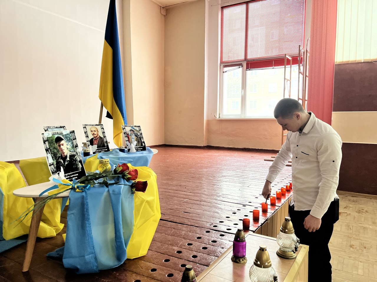Сьогодні в нашому навчальному закладі відбулася меморіальна акція. Учні та педагогічний колектив схилили голови у спільній молитві за загиблими внаслідок збройної агресії проти України. Запалені лампадки в руках молоді стали символом незламності духу та вічної пам’яті про героїв та мирних громадян.