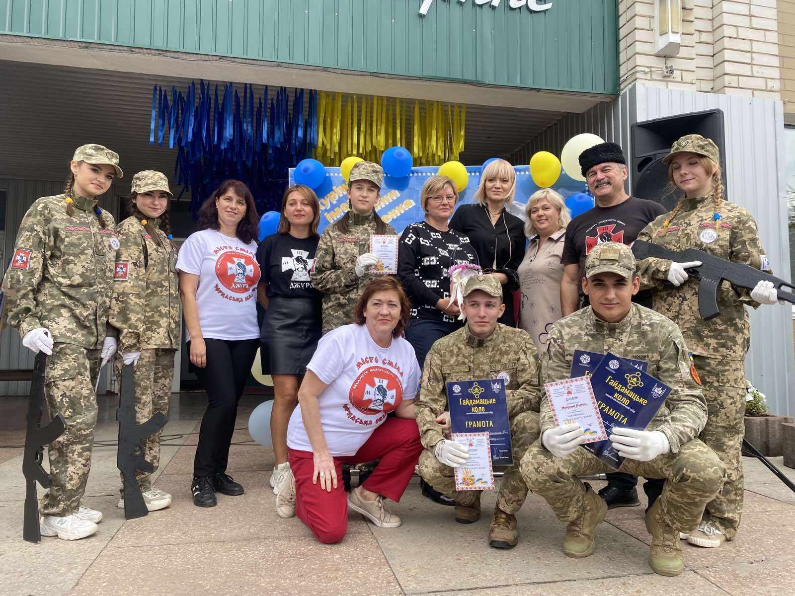 З вітальним словом виступила директорка школи Петряк Лариса Миколаївна та вручила юним краєзнавцям та їхнім керівникам і виховникам за пройдені влітку вікторини від Черкаського обласного центру туризму, краєзнавства і екскурсій дипломи, а двоє учасників рою "Гайдамаки" Моцний Антон та Луценко Дмитро отримали Дипломи від обласного військово-патріотичного табору "Козацьке коло" за проходження тижневого вишколу. Були відзначені і виховники та керівники роїв, а саме, Сидоренко Юлія Миколаївна, Таібов Рамазан Курбанович, Михайлик Тетяна Володимирівна та Царинна Людмила Геннадіївна Подяками від Управління освіти і науки Черкаської обласної державної адміністрації за високий професіоналізм, ініціативність, наполегливість, вагомий особистий внесок в розвиток національно-патріотичного виховання учнівської молоді Черкащини, збереження і розвиток культури та традицій України, організацію заходів та впровадження Всеукраїнської дитячо-юнацької військово-патріотичної гри "Сокіл" ("Джура") в системі освіти. Джури роїв "Гайдамаки" та "Крила ЗСУ" продемонстрували своє творче завдання з етапу "Впоряд" Урочистості завершились святковим патріотичним флешмобом від учасників роїв "Нічні кажани" та Залізні Вовки". Підсумком святкового дня була гутірка "Герой України - Євген Лисенко у нашій пам'яті назавжди", присвячена Патрону нашого Куреня.