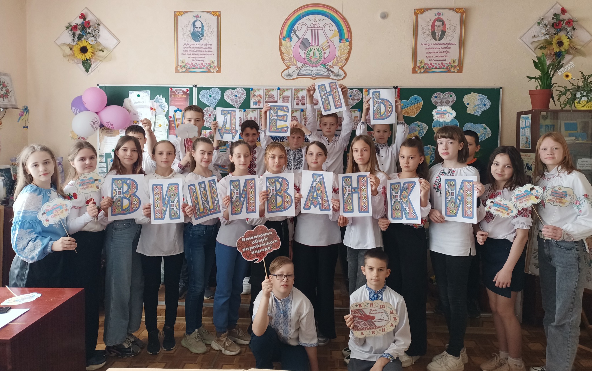 Під час святкування Дня вишиванки учні 6-Б класу та козацький рій "Залізні Вовки" куреня імені Героя України Євгена Лисенка Смілянської ЗОШ №7 змінили звичний одяг на святкові вишиванки, і відразу в класі стало тепло, світло, затишно та по-українськи традиційно. Діти намалювали слова "Воля", Перемога" "Україна" у кодах-вишиванках, склали Україну-вишиванку, яка об'єднує від Заходу до Сходу наш український народ в єдині наші традиції. Не злякались повітряної тривоги, а навпаки, дякуючи нашим Захисникам, підтримали акцію "Одягни вишиванку - підтримай Захисника".